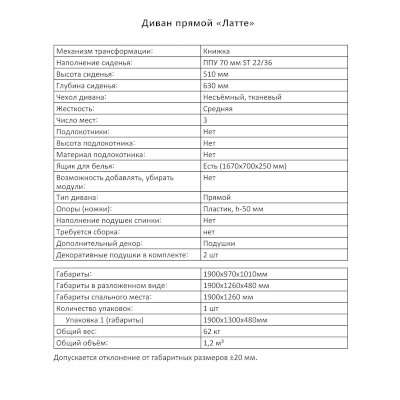 Диван Латте (Аквилон) продается в интернет-магазине mebel-online-ekaterinburg.ru по цене 28 547 руб. Есть доставка по Екатеринбургу и Свердловской области. Возможность подъема на этаж и сборки уточняйте у менеджера по телефону 8(800)505-27-11.