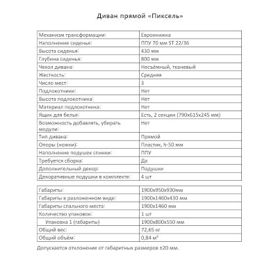 Диван Пиксель (Аквилон) продается в интернет-магазине mebel-online-ekaterinburg.ru по цене 30 299 руб. Есть доставка по Екатеринбургу и Свердловской области. Возможность подъема на этаж и сборки уточняйте у менеджера по телефону 8(800)505-27-11.