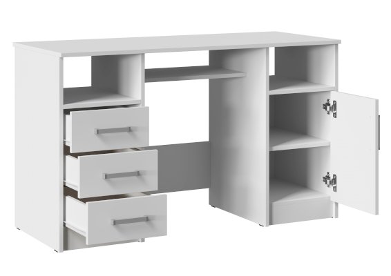 Он состоит из двух тумб, расположенных по краям, и столешницы, обеспечивающей достаточно места для работы и учебы. Открытые ниши, расположенные под столешницей над каждой из тумб  идеально подходят для хранения книг, документов или других необходимых вещей, которые всегда должны быть под рукой.